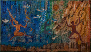 Hoje, nós do Matizes Dumont não trabalhamos com as cópias de riscos. Acreditamos nas artes visuais como forte expressão criativa. Temos o privilégio de contarmos com a criação do Demóstenes Vargas, nosso irmão, artista plástico que elabora os riscos para bordarmos. Ele cria os desenhos e nos deixa com total liberdade para bordarmos, acrescentarmos ao risco a nossa criatividade própria.